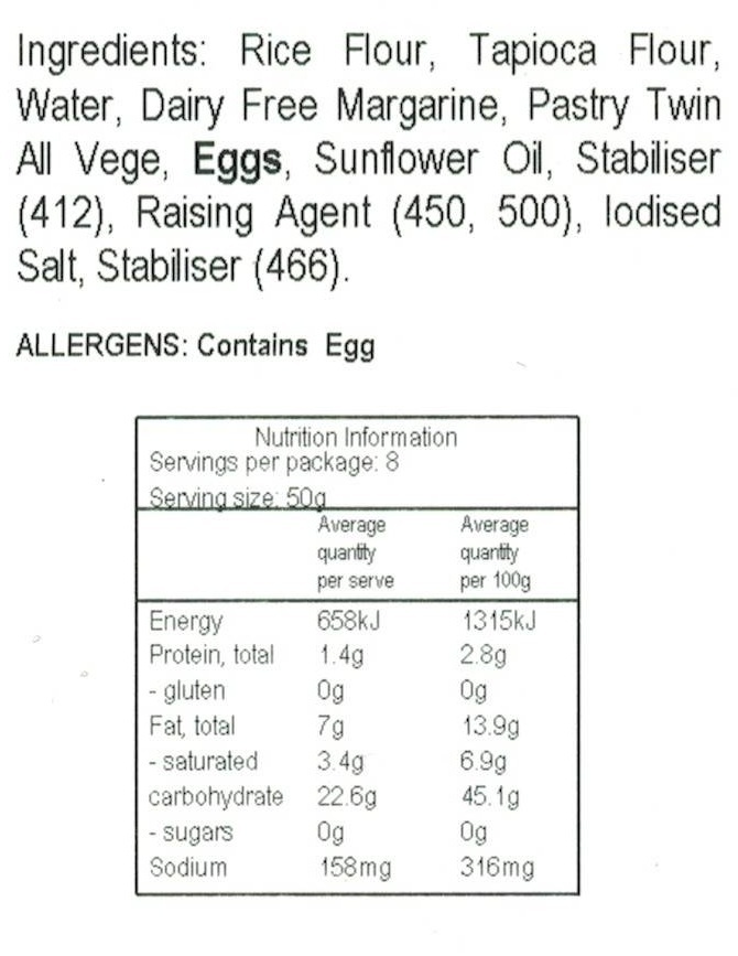 Roll out at room temperature to approx 3mm thick. Spray tin and line with pastry, place filling in and cook. Egg wash for good colour.